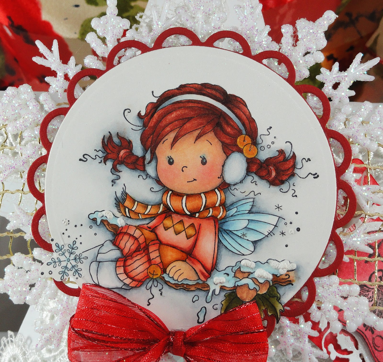 If you know me at all, you know I love to make projects for my craft table loving customers! This is no exception and the star really is beautiful at the top of a tree! She's the perfect little Wee fairy for the top of a tree sitting on her snow covered branch all cozy with her muffs!